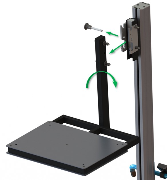 Le principe est très simple. Quand vous aurez besoin de lever très haut, vous détaché le plateau de son attache rapide et vous le retourner pour changer de sens du plateau.