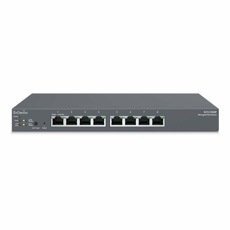 EnGenius Cloud ECS1008P est un commutateur Gigabit PoE Layer 2 à 8 ports avec un budget de 55 W. Sélectionnez les options de gestion cloud ou sur le site en fonction de l'architecture du réseau, des autorisations administratives, des aptitudes techniques ou même du budget. Les fonctionnalités de classe entreprise optimisent l'efficacité du réseau en garantissant des performances optimales tout en réduisant les dépenses d'investissement et d'exploitation pour les PME soucieuses des coûts.